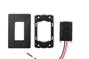 Devices snap into single or dual-gang brackets with a patented enclosure design that allows quick field service — similar to a TV remote battery door
